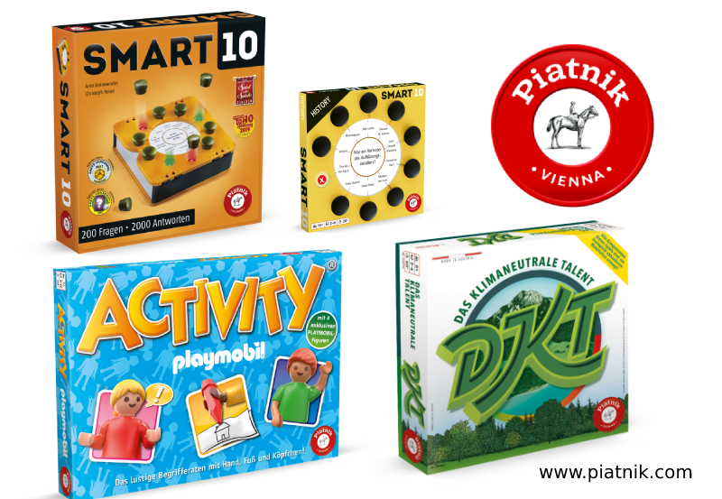 Auch heuer verschenkt Piatnik wieder ein exklusives Spielepaket für die ganze Familie. Retten Sie gemeinsam das Klima mit DKT – Das klimaneutrale Talent, testen Sie Ihr Wissen mit Smart 10 und den Zusatzkarten „History“ oder machen Sie einen lustigen Spieleabend mit Activity PLAYMOBIL, wo kein Auge trocken bleibt.Piatnik wünscht Ihnen schöne, verspielte Feiertage.
