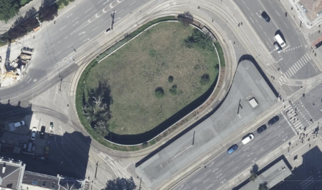 Auflösung von gestern: Unser Satellitenbild zeigte gestern das sogenannte Jonasreindl, den Straßenbahnknotenpunkt beim Schottentor. | | ©Geoland |